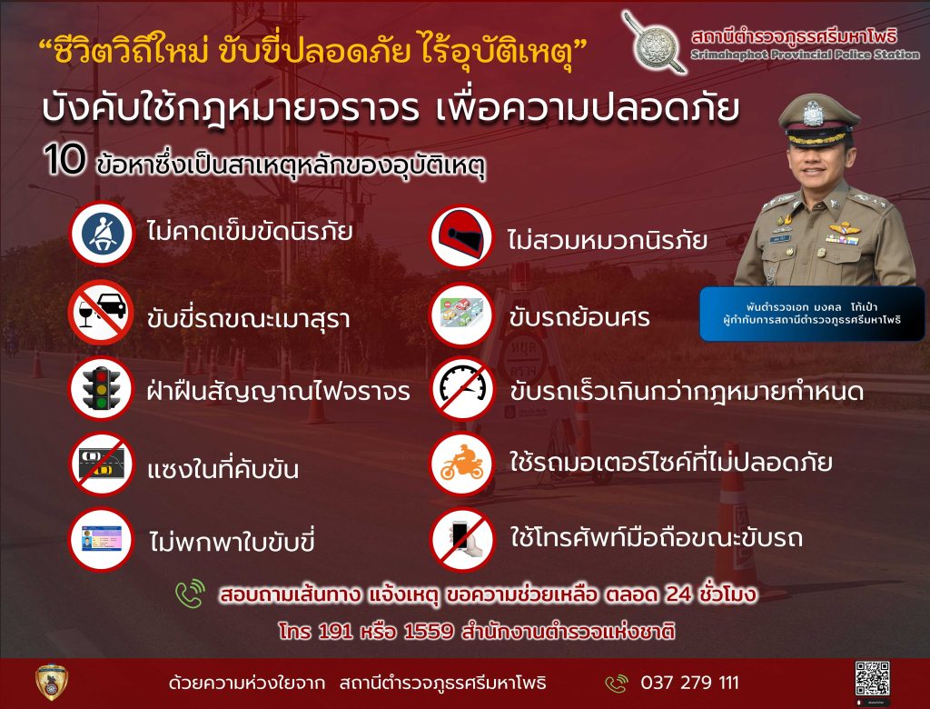พ.ต.อ.มงคล โท้เป๋า ผกก.สภ.ศรีมหาโพธิ เปิดโครงการอบรมลดการบาดเจ็บและเสียชีวิตจากการไม่สวมหมวกนิรภัยในผู้ขับขี่รถจักรยานยนต์ (มอเตอร์ไซค์วิน) ให้แก่มอเตอร์ไซค์วิน ในเขตพื้นที่รับผิดชอบของสภ.ศรีมหาโพธิ