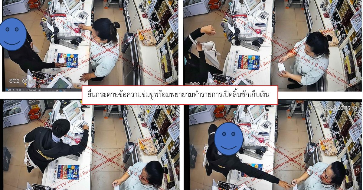 เจ้าหน้าที่ตำรวจชุดสืบสวน สภ.ศรีมหาโพธิ ได้ตรวจสอบกล้องวงจรปิดบริเวณร้านที่เกิดเหตุ พบว่าเมื่อวันที่12 มี.ค. 2567 เวลาประมาณ 21.52 น. ได้มีผู้ก่อเหตุเป็นชายจำนวน 1 คน ขับขี่รถจักรยานยนต์ยี่ห้อฮอนด้า รุ่น เวฟ100 สีดำ,เทา มาที่ร้านค้าที่เกิดเหตุ จากนั้นผู้ก่อเหตุได้เดินเข้ามาภายในร้านได้ทำทีเลือกซื้อของภายในร้าน แต่ไม่ได้ซื้ออะไร จากนั้นผู้ก่อเหตุได้เดินมาที่ เคาเตอร์ แคชเชียร์ และได้ยื่นกระดาษซึ่งเขียนข้อความข่มขู่ พร้อมพูดข่มขู่ให้พนักงานของร้านนำเงินสดให้ แต่พนักงานไม่ได้นำเงินให้แต่อย่างใด ผู้ก่อเหตุจึงหยิบกระดาษข้อความคืนจากพนักงานและเดินออกจากร้าน ขับรถจักรยานยนต์หลบหนีไป