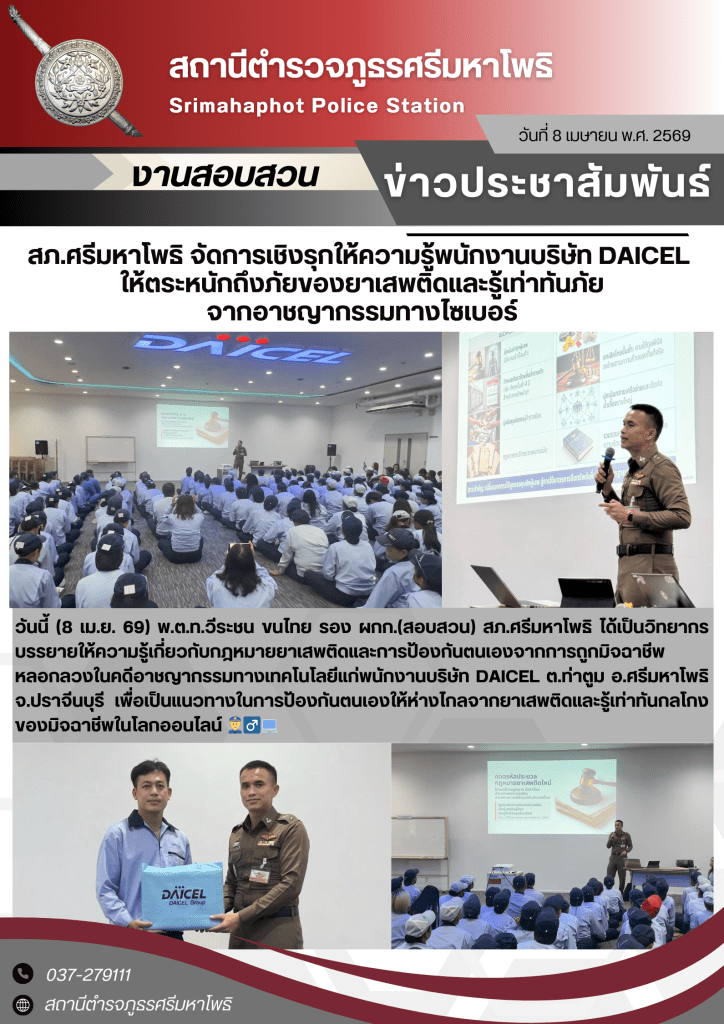 ▶️เป็นวิทยากรบรรยายให้ความรู้เกี่ยวกับกฎหมายยาเสพติดและการป้องกันตนเองจากการถูกมิจฉาชีพหลอกลวงในคดีอาชญากรรมทางเทคโนโลยีแก่