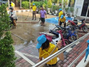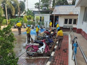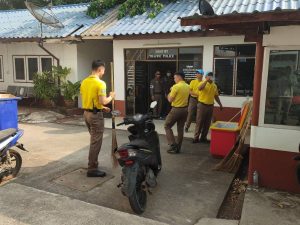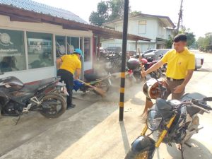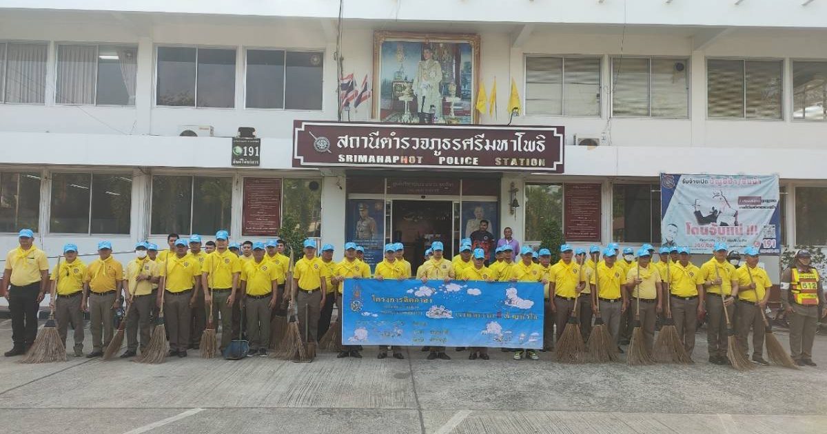 พ.ต.อ.มงคล โท้เป๋า ผกก.สภ.ศรีมหาโพธิ, พ.ต.ท.โอภาส บุญลือ สวป.ฯ, พ.ต.ท.หญิงกัญญลักษณ์ วิริยวรงพงศ์ สว.อก.ฯ พร้อมข้าราชการตำรวจชุดจิตอาสาในสังกัดร่วมกิจกรรมจิตอาสาพัฒนาบำเพ็ญสาธารณะประโยชน์ ทำความสะอาด ปรับภูมิทัศน์บริเวณรอบอาคารที่ทำการ สภ.ศรีมหาโพธิ