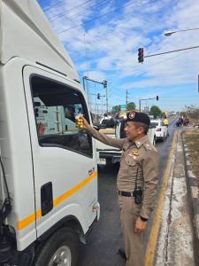 อำนวยความสะดวกด้านการจราจรให้แก่ประชาชนที่เดินทางกลับภูมิลำเนา และเดินทางท่องเที่ยว ช่วงเทศกาลปีใหม่ 2568 นอกจากนี้ ยังได้เตรียมผลไม้เพื่อมอบให้เป็นของขวัญปีใหม่ให้กับประชาชนที่เดินทางเพื่อฉลองเทศกาลปีใหม่นี้อย่างมีความสุข สะดวก ปลอดภัย