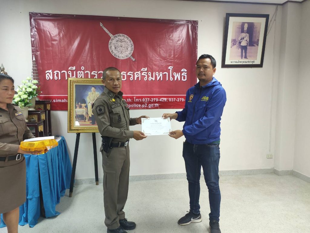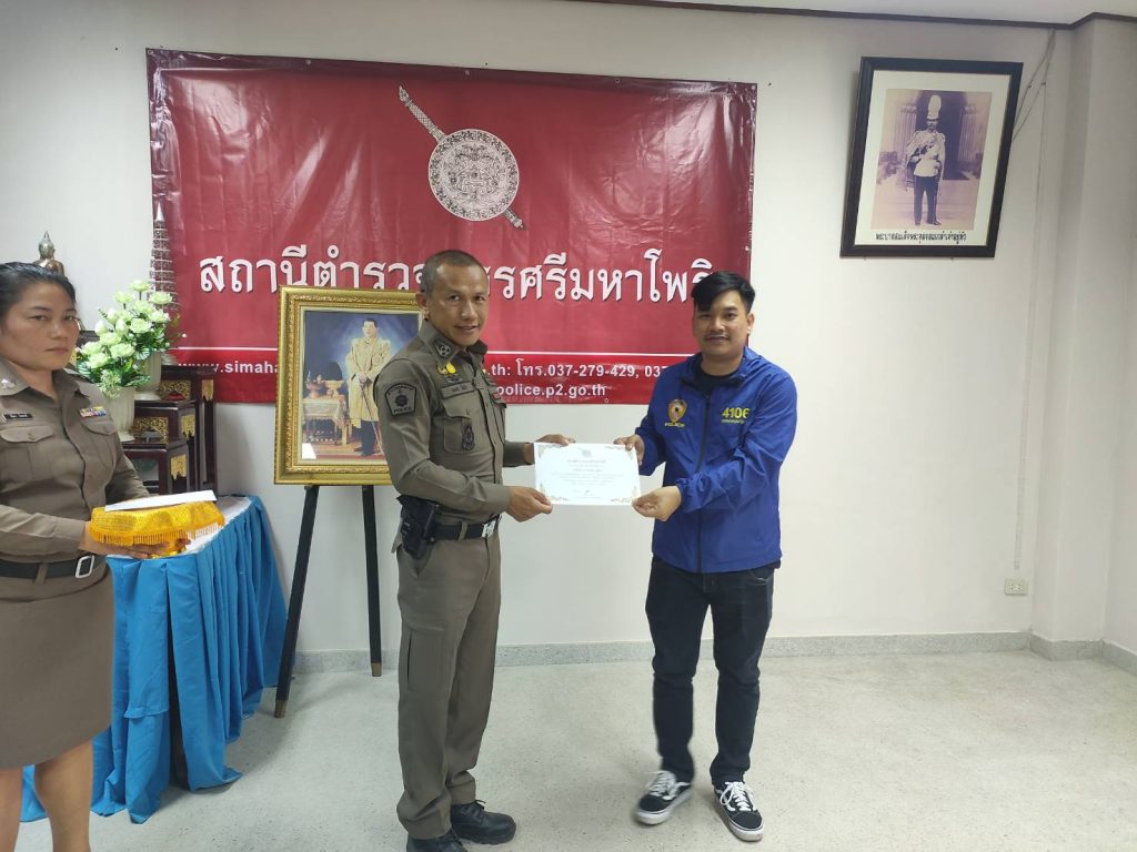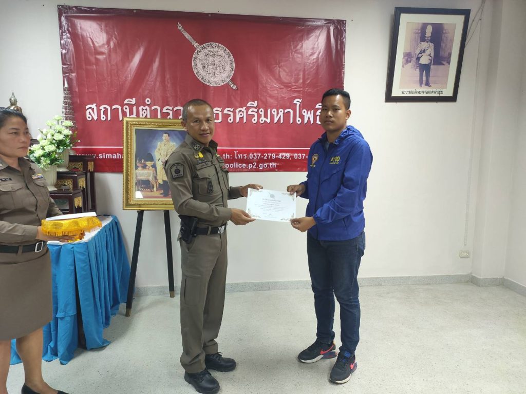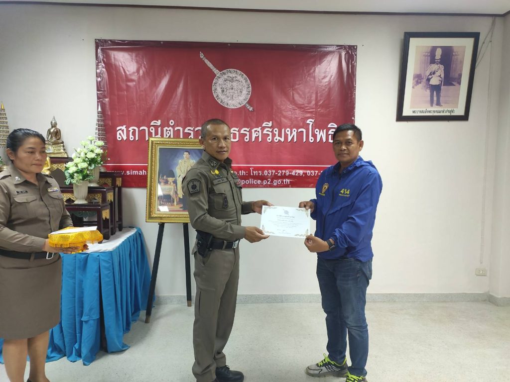 พ.ต.อ.มงคล โท้เป๋า ผกก.สภ.ศรีมหาโพธิ มอบใบประกาศเกียรติคุณและบำรุงขวัญกำลังใจ ให้แก่ข้าราชการตำรวจและอาสาสมัครตำรวจผู้ปฏิบัติหน้าที่อุทิศตนเสียสละและปฏิบัติหน้าที่ดีเด่น ดังนี้ – มอบใบประกาศเกียรติคุณให้ข้าราชการตำรวจ จำนวน 8 นาย