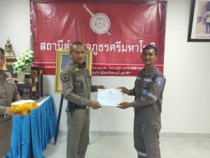 – มอบใบประกาศเกียรติคุณให้อาสาสมัครตำรวจจราจร จำนวน 2 คน