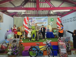 ได้มอบของขวัญ เครื่องเขียน สี กระปุกออมสิน เครื่องกีฬา