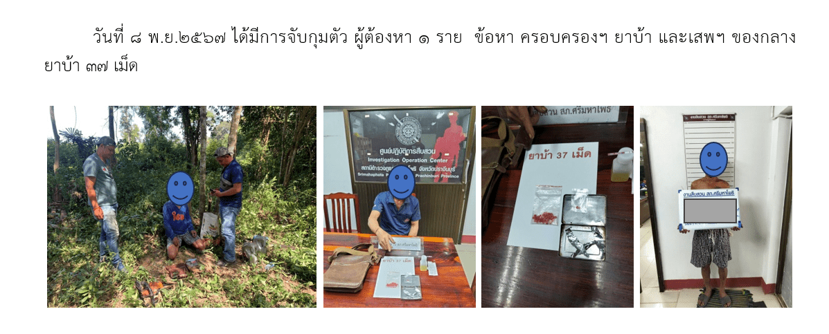 วันที่ 8 พ.ย.2567 ได้มีการจับกุมตัว ผู้ต้องหา 1 ราย ข้อหา ครอบครองฯ ยาบ้า และเสพฯ ของกลาง ยาบ้า 37 เม็ด