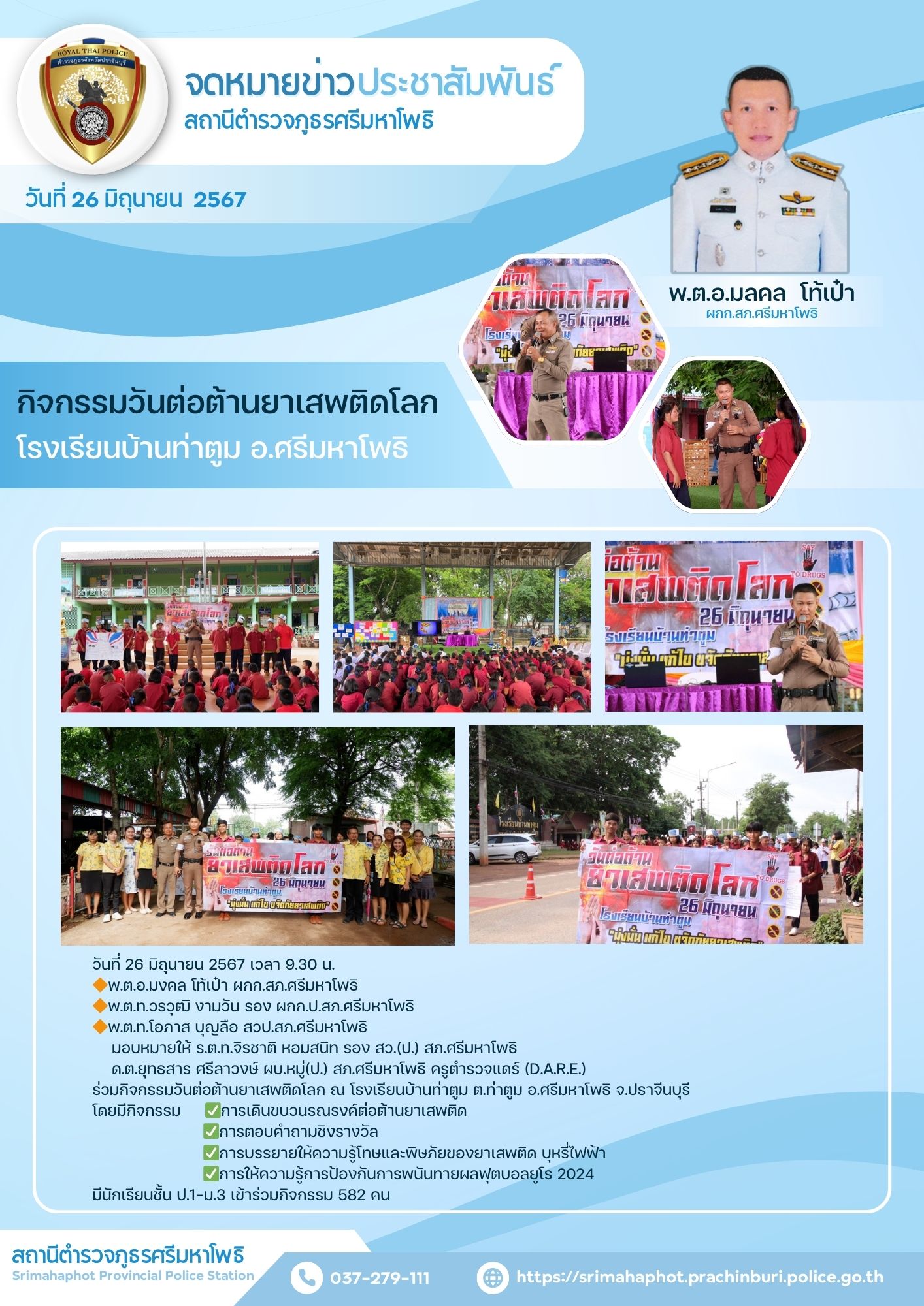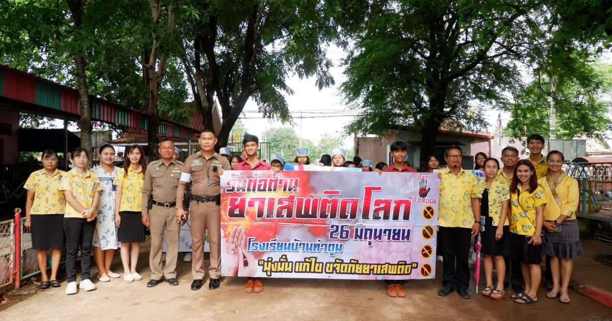 ร่วมกิจกรรมวันต่อต้านยาเสพติดโลก ณ โรงเรียนบ้านท่าตูม ต.ท่าตูม อ.ศรีมหาโพธิ จ.ปราจีนบุรี