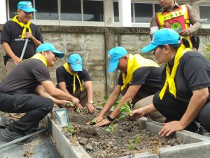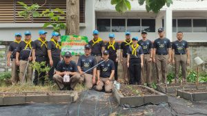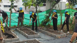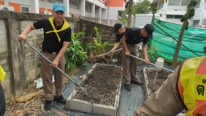 เจ้าหน้าที่ร่วมกันพัฒนาแปลงปลูกผักด้านหลังสถานี โดยมีการปรับปรุงดิน เติมวัสดุปลูกใหม่ และรดน้ำต้นไม้