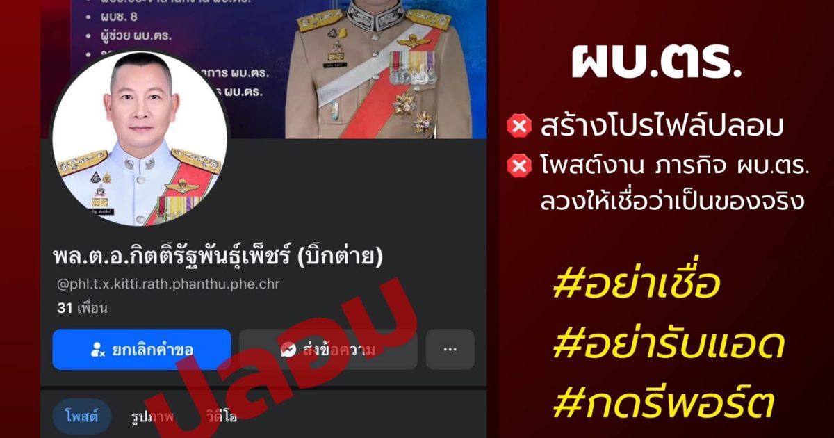 อย่าเชื่อ อย่ารับแอด กดรีพอร์ต “บัญชีเฟซบุ๊กปลอม” แอบอ้าง เป็น ผบ.ตร.