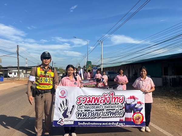 อำนวยความสะดวกการจราจรขบวนพาเหรดการแข่งขันกีฬานักเรียนเขตคุณภาพศรีมหาโพธิ 1 ณ สนามกีฬาโรงเรียนบ้านท่าตูม