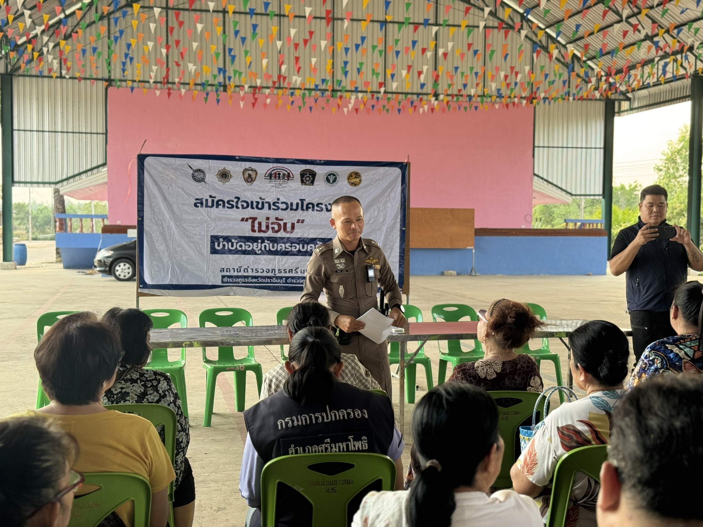 พ.ต.อ.โสภณ พรามณี ผกก.สภ.ศรีมหาโพธิ ร่วมพิธีเปิดโครงการสร้างเครือข่ายการมีส่วนร่วมของประชาชนในการแก้ไขปัญหาความเดือดร้อนของประชาชนในระดับสถานีตํารวจ เพื่อสนับสนุนการป้องกันปราบปรามอาชญากรรม