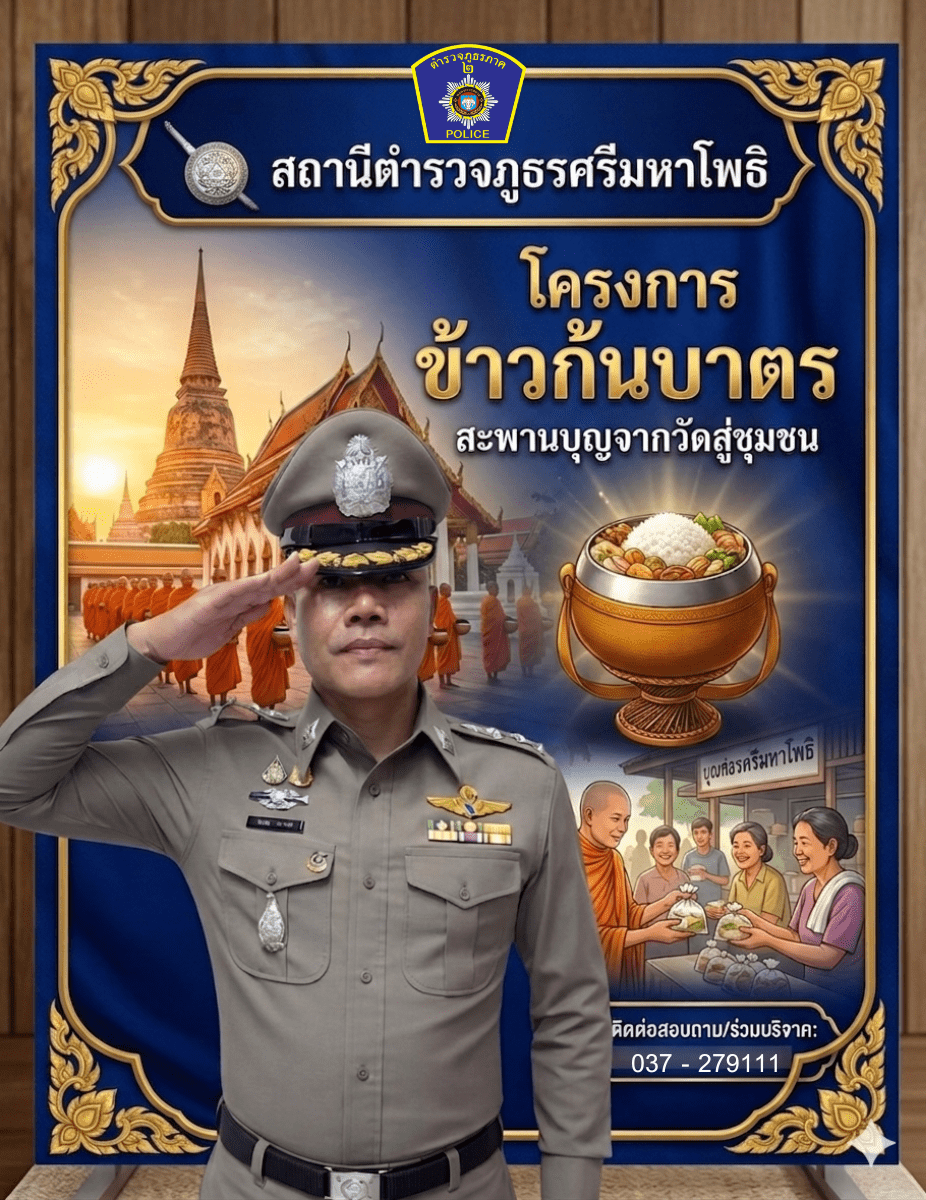 วันที่ 24 มี.ค. 2569 เวลา 09.00 น. พ.ต.อ.โสภณ พรามณี ผกก.สภ.ศรีมหาโพธิ พ.ต.ท.วรวุฒิ งามวัน รอง ผกก