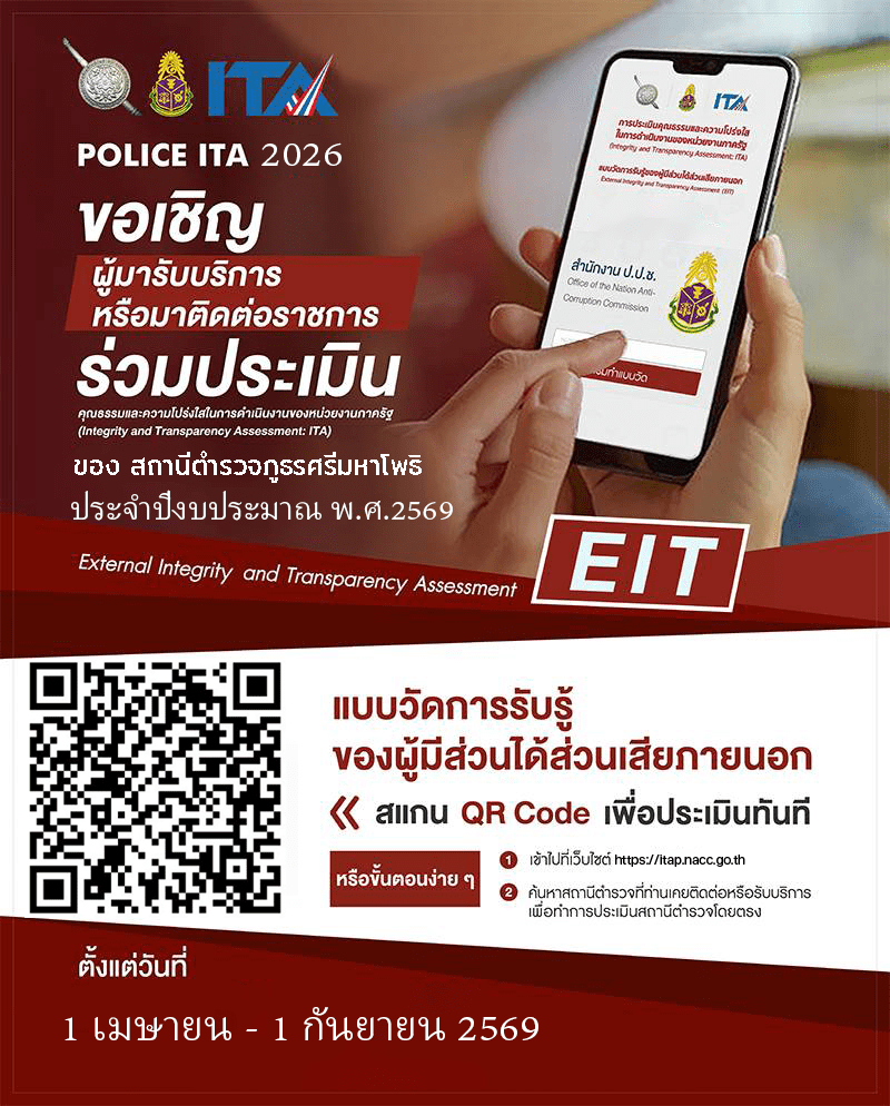 วันที่ 22 เม.ย. 2569 เวลา 10.30 น. พ.ต.อ.โสภณ พรามณี ผกก.สภ.ศรีมหาโพธิ พ.ต.ท.หญิง กัญญลักษณ์ วิริ