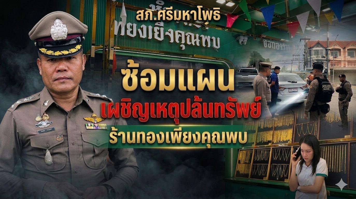 พ.ต.อ.โสภณ พรามณี ผกก.สภ.ศรีมหาโพธิ ร่วมซักซ้อมแผนเผชิญเหตุคนร้ายปล้นทรัพย์ ณ ร้านทองเพียงคุณพบ สาขาโคกขวาง ต.ศรีมหาโพธิ อ.ศรีมหาโพธิ จ.ปราจีนบุรี